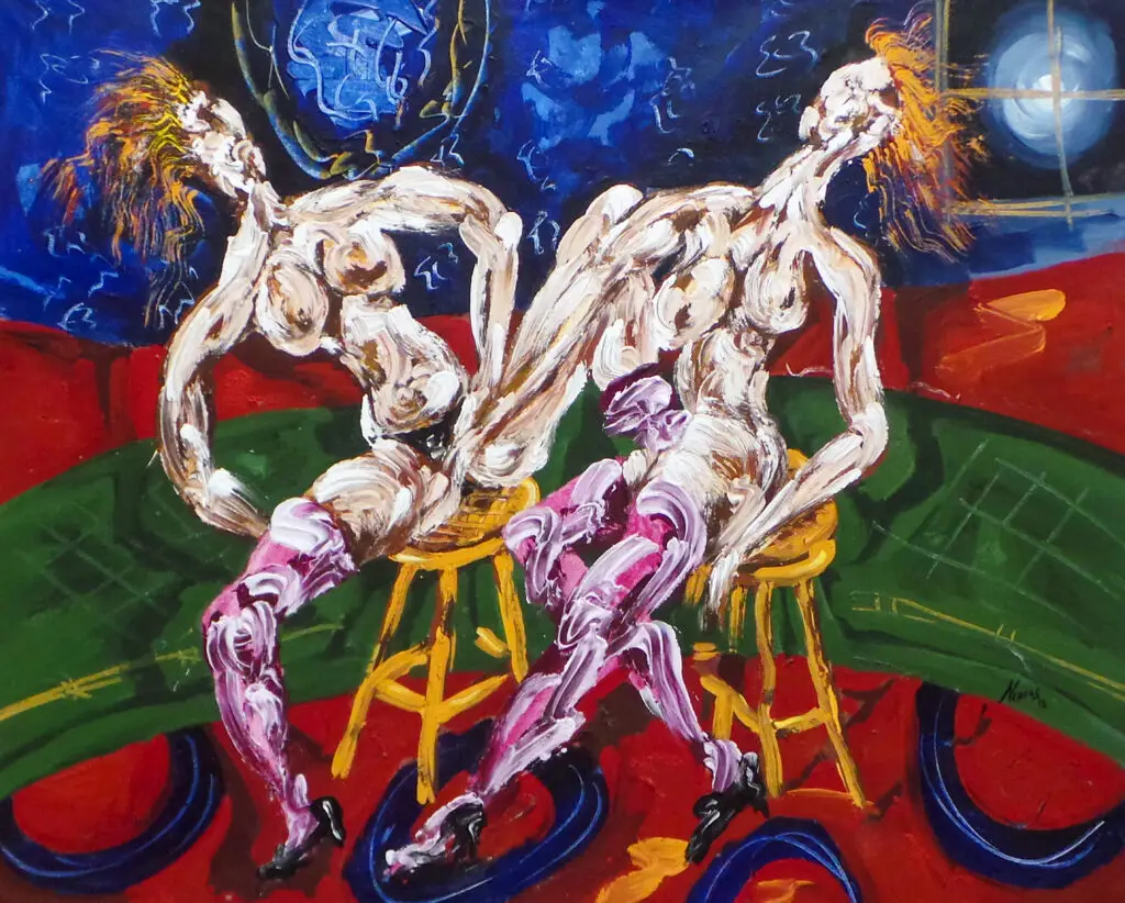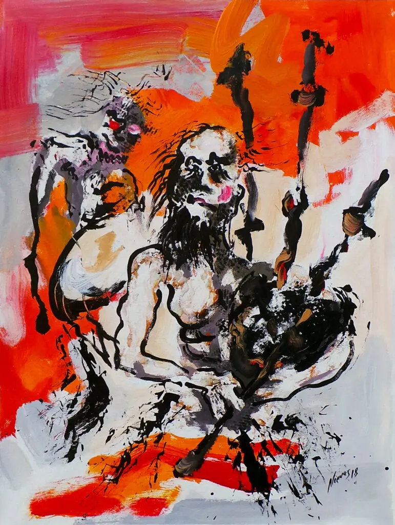 ACRÍLICO SOBRE LIENZO PEGADO EN TABLA.